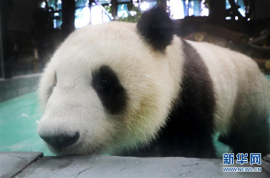 6月18日,大熊貓“和風(fēng)”湊到展館玻璃幕墻邊向外張望。 當(dāng)日,來(lái)自四川的大熊貓兄弟“和風(fēng)”與“星光”飛抵上海,正式開(kāi)始了在上海動(dòng)物園為期三年的生活。為迎接這對(duì)“風(fēng)光兄弟”,上海動(dòng)物園將原有的大熊貓館擴(kuò)建并裝修一新,空調(diào)、水池、游樂(lè)場(chǎng)以及竹葉儲(chǔ)存間等配置齊全。 新華社記者 方喆 攝