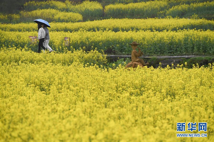 3月28日,游客從黟縣西遞的油菜花田間經(jīng)過(guò)。近日,安徽省黃山市黟縣的油菜花迎來(lái)盛花期。金黃的油菜花與屋舍、道路等形成一幅幅美麗的鄉(xiāng)村畫(huà)卷,引人入勝。 新華社記者張端攝