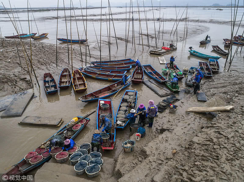 浙江臺(tái)州,三門縣花橋鎮(zhèn)柵下村的文化禮堂前,村民們冒雨和商販交易蟶苗,現(xiàn)場(chǎng)一片繁忙。據(jù)了解,花橋蟶苗屬于野生苗,存活率高,易成長,極受市場(chǎng)歡迎,一到捕撈季節(jié),遼寧、山東、江蘇和浙江的養(yǎng)殖戶和蟶苗小販爭(zhēng)相到花橋購買優(yōu)質(zhì)蟶苗。