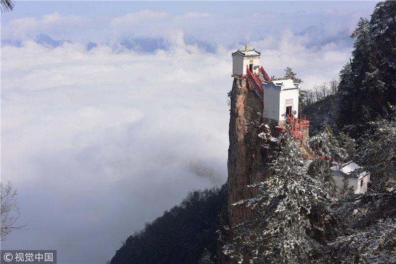 2019年3月3日,陜西商洛,位于鎮(zhèn)安縣的塔云山景區(qū)云海翻騰,宛如仙境。