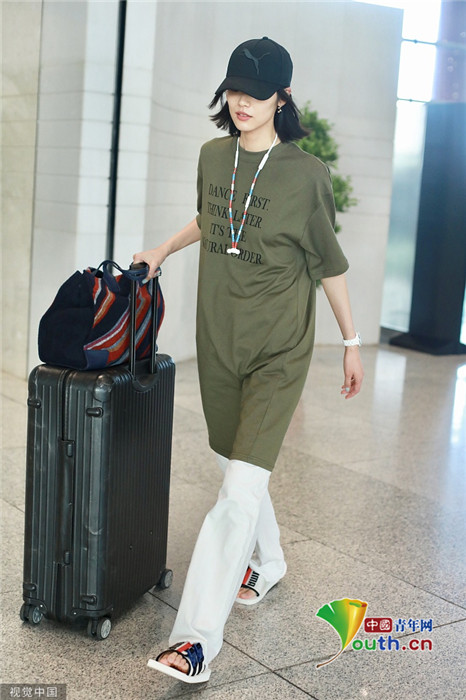 2019年7月23日,北京,劉雯現(xiàn)身機(jī)場。她頭戴棒球帽,身穿oversize上衣腳踩拖鞋,走慵懶隨性風(fēng),盡顯超模氣場,露出招牌笑容親切又有感染力。
