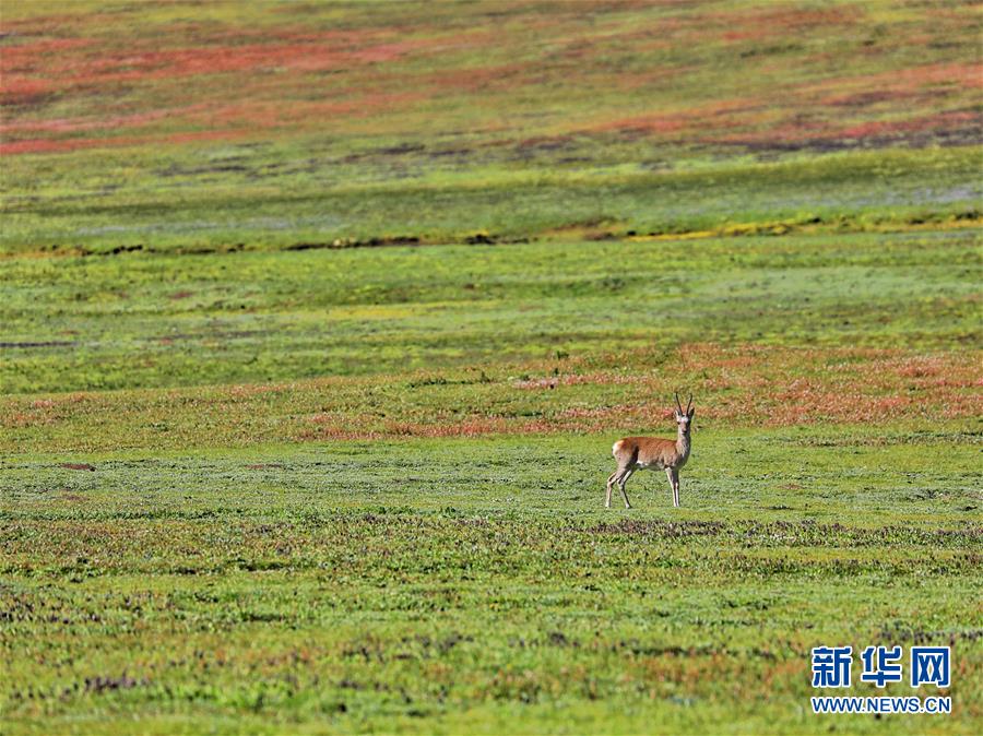 一只藏原羚在草原上駐足(8月14日攝)。 8月12日至14日,來自全國各地的31名自然愛好者聚集在海拔4200米的青海省玉樹藏族自治州稱多縣嘉塘草原,參加“2019嘉塘自然觀察節(jié)”。自然愛好者用獨特視角記錄珍稀野生動植物,觀察三江源生態(tài)。 新華社記者 張大川 攝