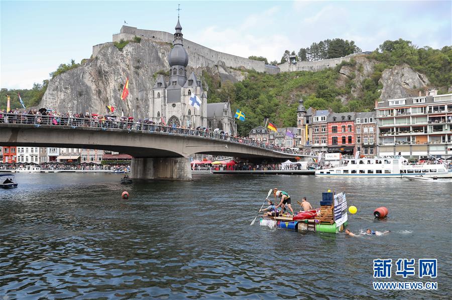 8月15日,在比利時(shí)南部小城迪南的默茲河上,人們參加“浴缸劃船節(jié)”的表演。