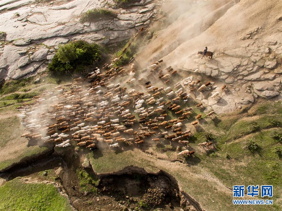 這是牧道上轉(zhuǎn)場(chǎng)的牲畜(6月6日攝)。新華社記者丁磊攝