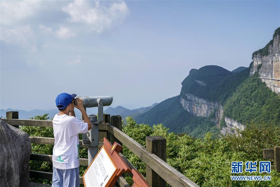 游客在重慶金佛山風(fēng)景區(qū)用望遠(yuǎn)鏡觀景(8月20日攝)。 新華社記者 劉潺 攝