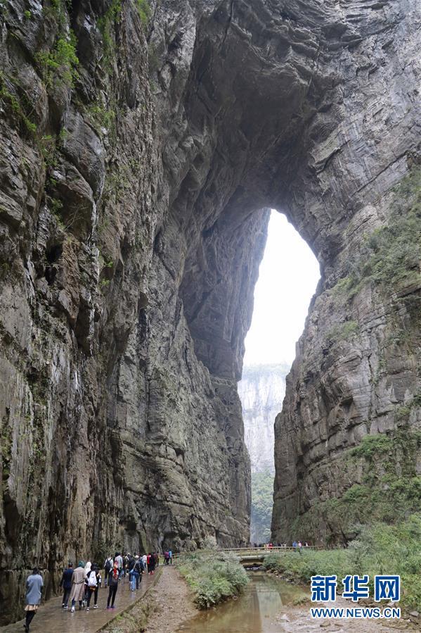 游客在天生三橋景區(qū)內(nèi)的天龍橋景點(diǎn)游覽(3月27日攝)。 新華社記者劉潺攝