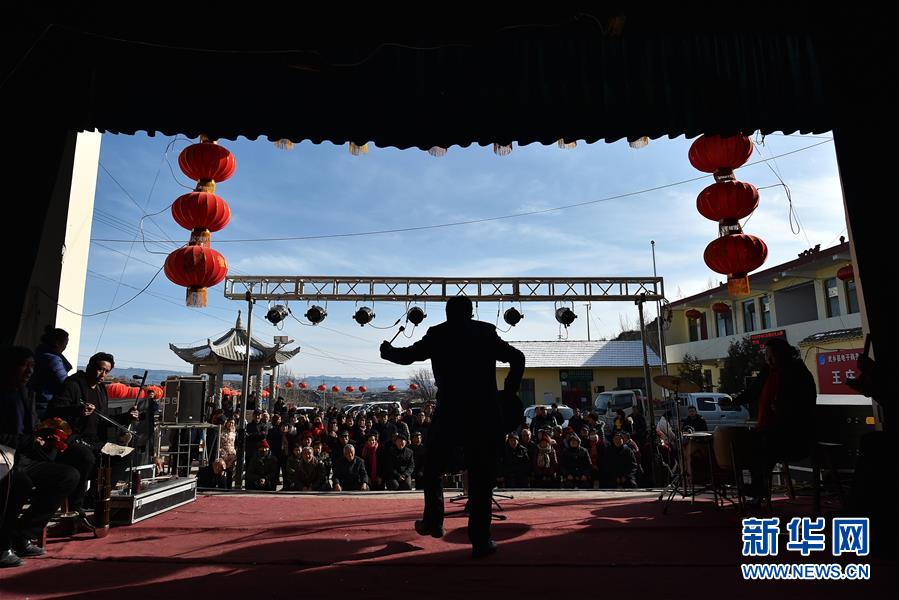 在武鄉(xiāng)縣大有鄉(xiāng)王莊溝村,村里請來的劇團在文化劇場為村民演出(2月16日攝)。新華社記者 詹彥 攝