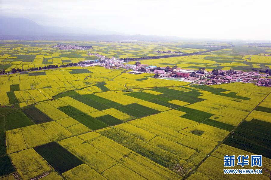 這是在甘肅省張掖市民樂(lè)縣扁都口生態(tài)休閑旅游區(qū)周邊田園拍攝的油菜花海(7月17日無(wú)人機(jī)拍攝)。新華社記者 范培珅 攝