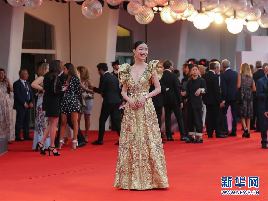 8月28日,在意大利威尼斯,中國(guó)演員鐘楚曦亮相開(kāi)幕式紅毯。新華社記者 程婷婷 攝