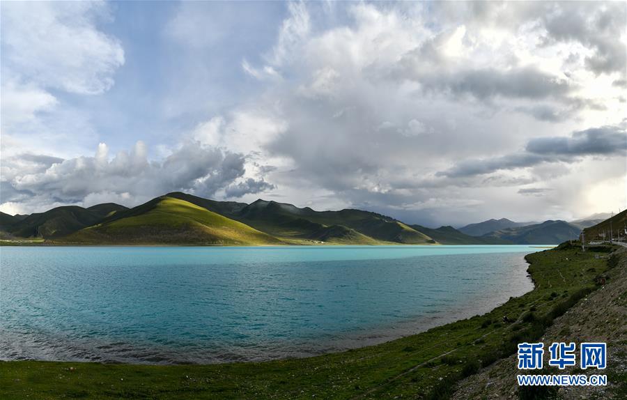 8月31日拍攝的羊卓雍錯風(fēng)光(拼接照片)。新華社記者 李鑫 攝
