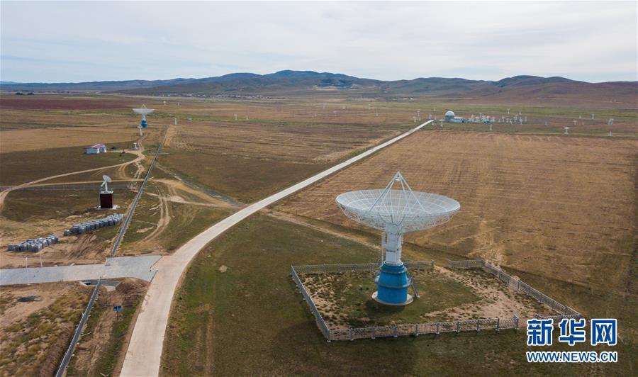 這是9月17日在國(guó)家天文臺(tái)明安圖觀測(cè)基地拍攝的射電頻譜日像儀天線(無人機(jī)拍攝)。 新華社記者 彭源 攝