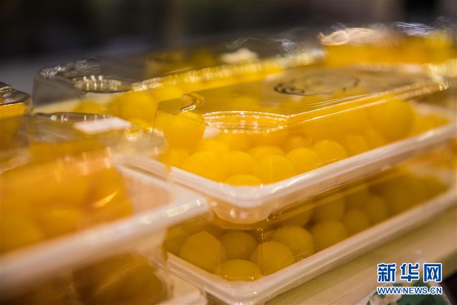 這是9月1日在泰國曼谷著名的“九姐妹甜點(diǎn)”店拍攝的泰國傳統(tǒng)甜點(diǎn)——蛋黃球。新華社記者 張可任 攝