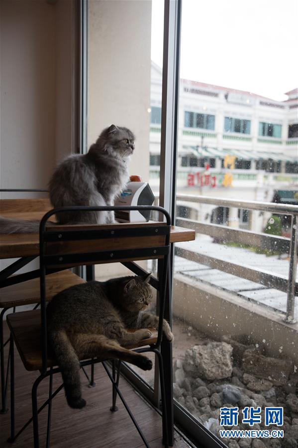這是9月9日拍攝的曼谷動(dòng)物咖啡館的兩只貓。新華社記者 張可任 攝