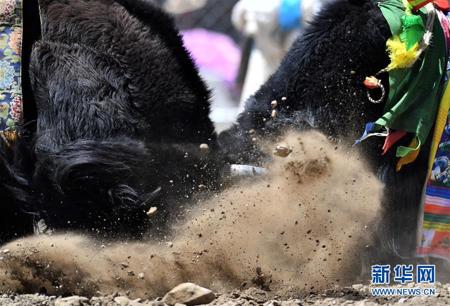 者下鄉(xiāng)斗牛節(jié)歷史悠久,是西藏自治區(qū)非物質(zhì)文化遺產(chǎn)。牧民為參加比賽的種牦牛披綢掛緞,將牛群趕到位于日喀則市白朗縣者下鄉(xiāng)的斗牛場(chǎng)上。參賽的種牦牛為了爭(zhēng)奪牛群的控制權(quán),在成群的母牛面前,更加好斗。角斗有的瞬間分出勝負(fù),有的持續(xù)幾十分鐘,最終勝出的被稱為“牦牛至尊”。