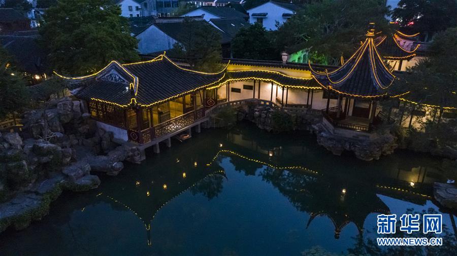 這是5月22日晚拍攝的蘇州網(wǎng)師園(無人機拍攝)。網(wǎng)師園是唯一在夜間面向公眾開放的蘇州園林。 新華社記者 沈伯韓 攝