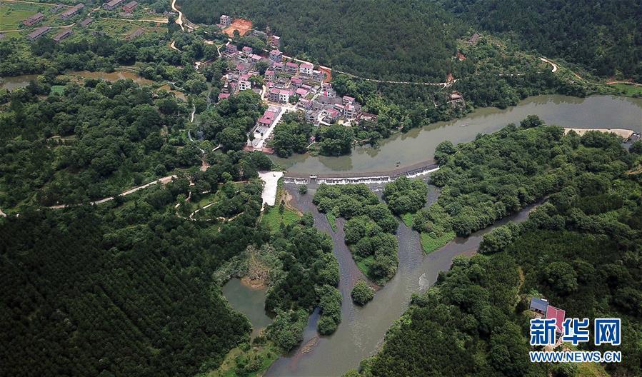 這是槎灘陂水利灌溉工程一景(5月29日無人機(jī)拍攝)。新華社記者彭昭之?dāng)z