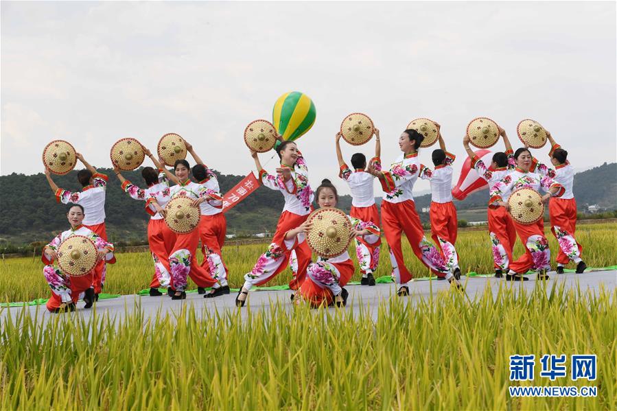9月15日,人們?cè)谔镆袄锉硌菸璧浮对谙M奶镆吧稀贰?新華社記者 楊宗友 攝