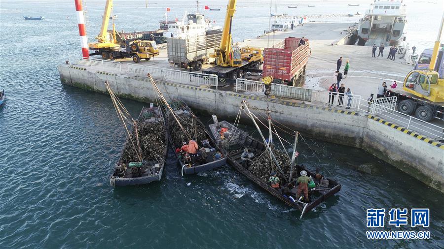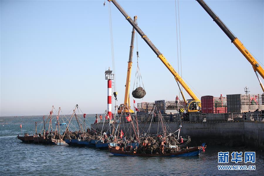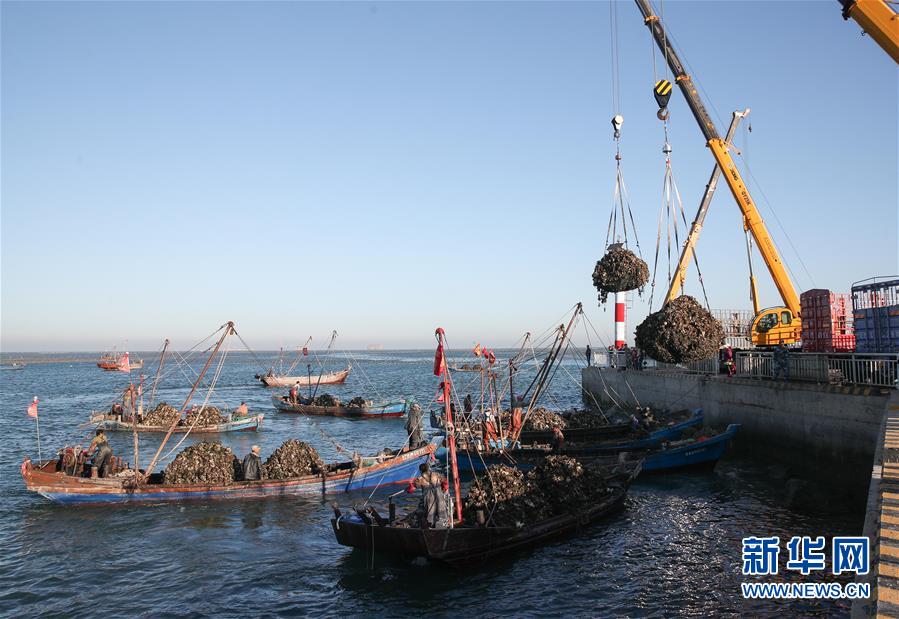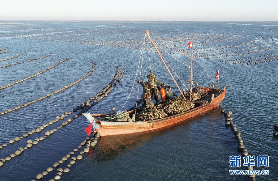 當(dāng)日,在遼寧省大連市長(zhǎng)??h廣鹿島海域,漁民忙碌地打撈牡蠣,呈現(xiàn)一片繁忙的豐收景象。近年來(lái),大連市持續(xù)加強(qiáng)海洋牧場(chǎng)建設(shè),目前已累計(jì)建設(shè)海洋牧場(chǎng)約36萬(wàn)公頃,投放各類(lèi)魚(yú)礁約1578萬(wàn)平方米,建立國(guó)家級(jí)海洋牧場(chǎng)示范區(qū)14處。