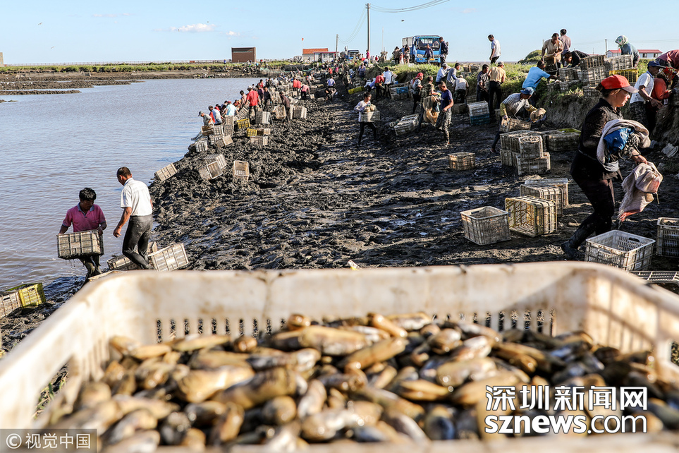 時(shí)下正是沿海地區(qū)海蟶收獲的季節(jié),在江蘇連云港海邊的灘涂上,漁民們將收獲的海蟶裝箱外運(yùn),一片忙碌。