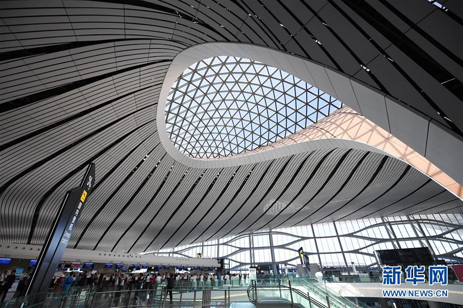 9月25日拍攝的北京大興國際機場航站樓內(nèi)部。新華社記者張晨霖攝