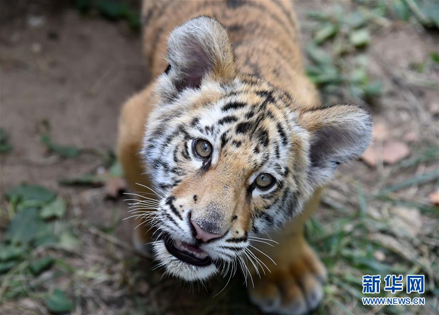 9月26日,孟加拉虎寶寶“小七”在自己的小窩里。 新華社記者 王凱 攝