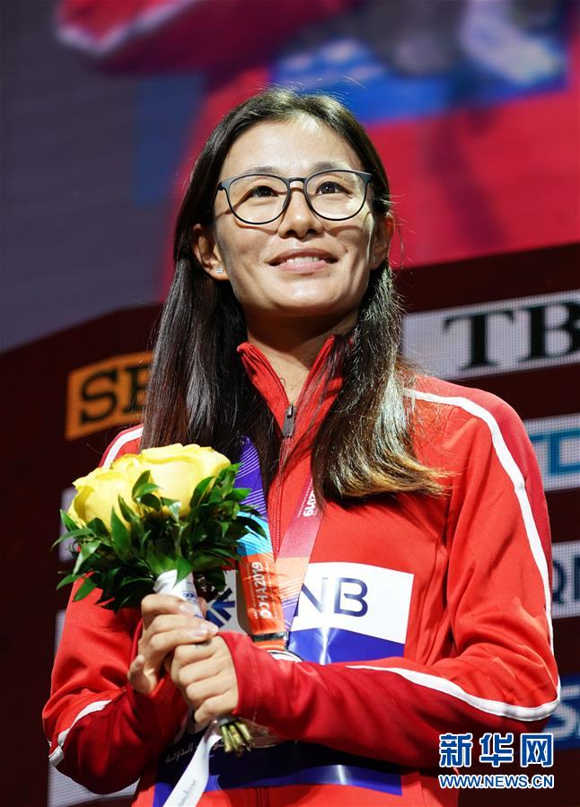 9月30日,亞軍中國(guó)選手切陽(yáng)什姐在頒獎(jiǎng)儀式上。新華社記者 徐速繪 攝