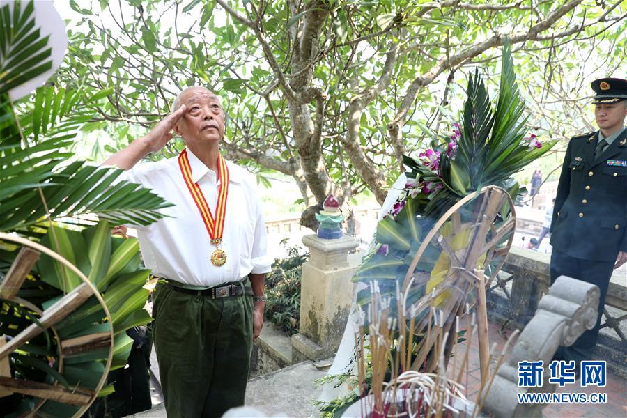 9月30日,在越南北部河南省,一名中國(guó)援越老兵向中國(guó)烈士紀(jì)念碑敬禮。 中國(guó)駐越南大使館館員、中國(guó)援越老戰(zhàn)士及其親屬、在越中資機(jī)構(gòu)和留學(xué)生代表等30日前往位于越南河南省的金榜烈士陵園,祭奠長(zhǎng)眠于此的14名中國(guó)援越烈士。越中友協(xié)副主席阮榮光等越方代表也參加了祭掃活動(dòng)。 新華社記者 王迪 攝