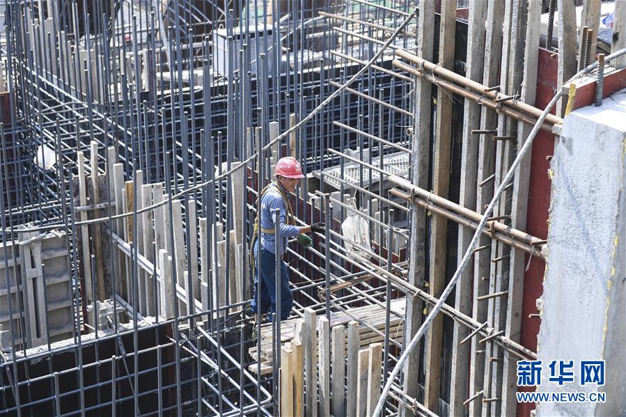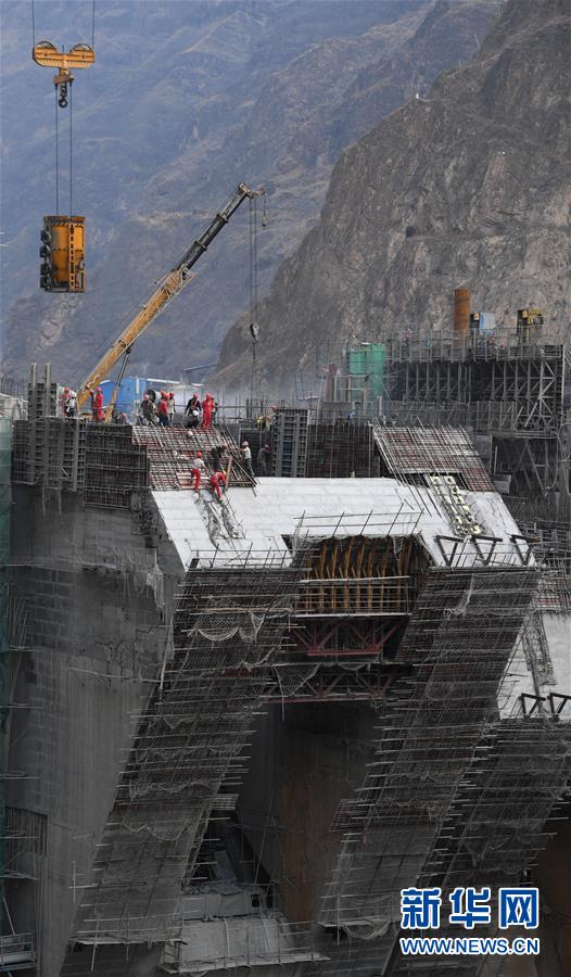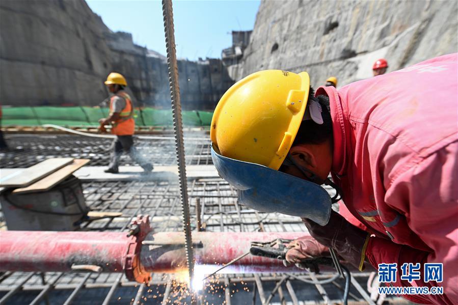 5月31日,工人在烏東德水電站的二道壩工地施工。新華社記者陳曄華攝