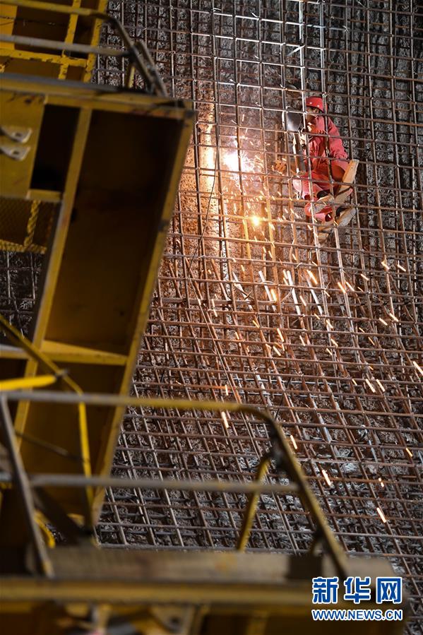 5月31日,一名工人在烏東德水電站的泄洪洞中施工。新華社記者陳曄華攝