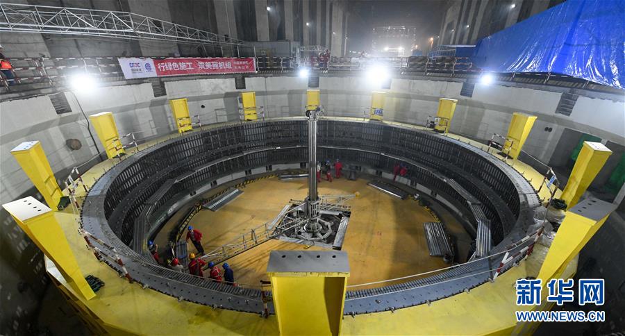烏東德水電站左岸地下電站主廠房?jī)?nèi)的6號(hào)機(jī)組正在建設(shè)中(5月30日攝)。新華社記者陳曄華攝