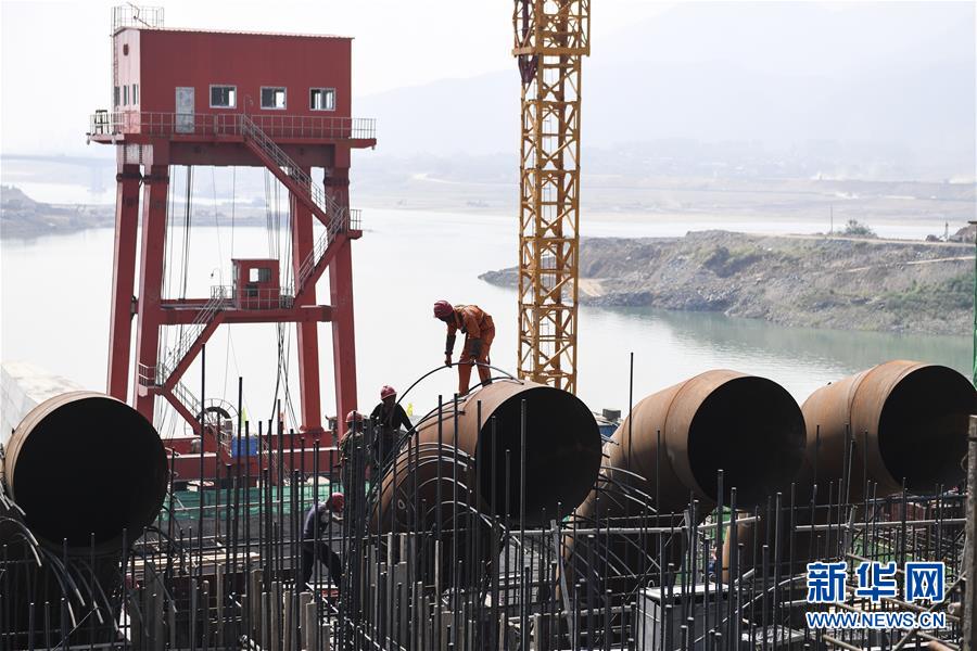 10月6日,工人在大藤峽水利樞紐工程工地上搬運(yùn)鋼材。新華社記者曹祎銘攝
