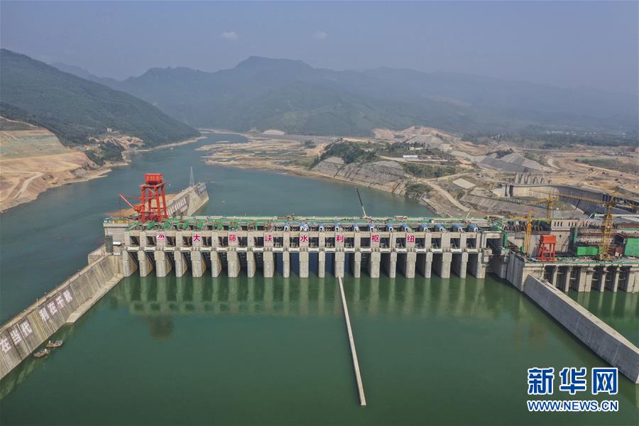 建設中的大藤峽水利樞紐工程(10月6日無人機拍攝)。新華社記者曹祎銘攝