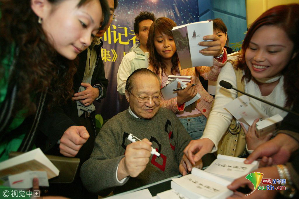 2003年7月25日,杭州,金庸給金迷簽名。圖片作者:史訓鋒