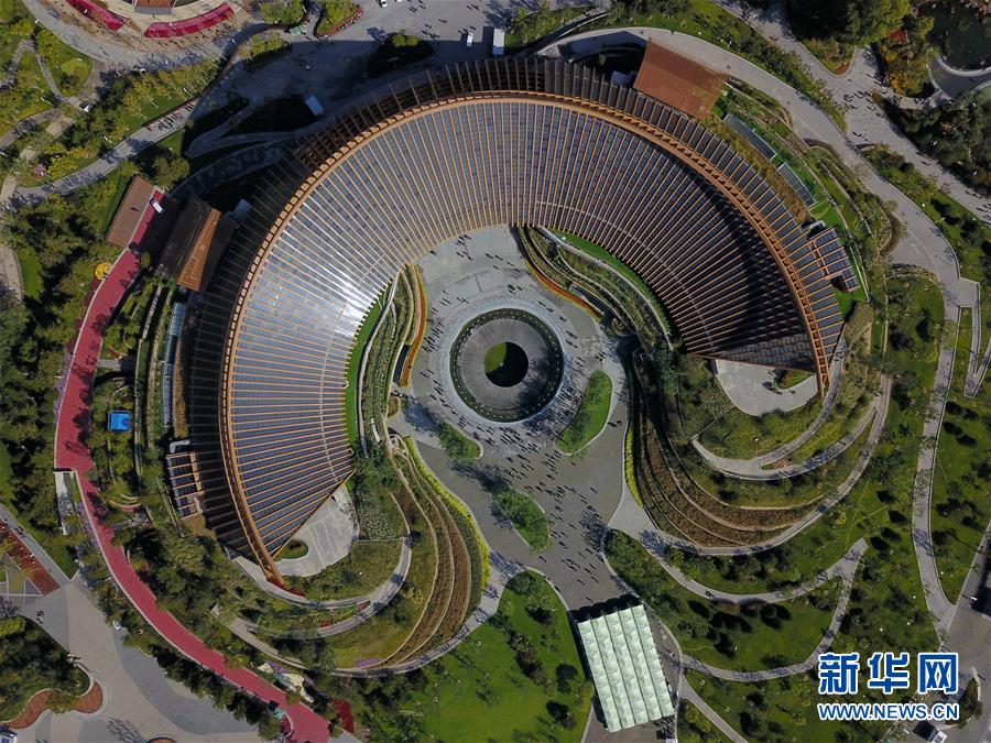 這是北京世園會中國館(10月7日無人機(jī)拍攝)。新華社記者張晨霖攝