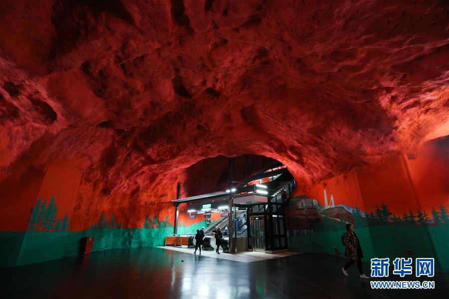 10月8日,在瑞典斯德哥爾摩,乘客在一處地鐵站內(nèi)行走。在瑞典首都斯德哥爾摩,每座地鐵站的站臺、墻壁及大廳的風(fēng)格設(shè)計(jì)都無一相同,各有特色。藝術(shù)家們運(yùn)用了各類藝術(shù)元素裝點(diǎn)地鐵站,色彩繽紛的視覺效果既突出了每個站臺的個性,也豐富了乘客的旅途體驗(yàn)。走進(jìn)斯德哥爾摩地鐵,仿佛置身于一座“地下藝術(shù)長廊”。新華社記者鄭煥松攝