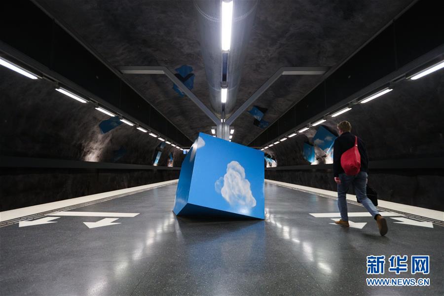 10月8日,在瑞典斯德哥爾摩,乘客在一處地鐵站內(nèi)行走。新華社記者鄭煥松攝