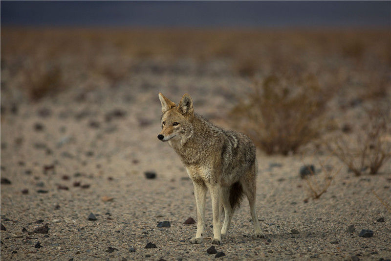 當?shù)貢r間2017年1月8日,美國加州,一系列強風暴進入加州,一只土狼在沙漠中。