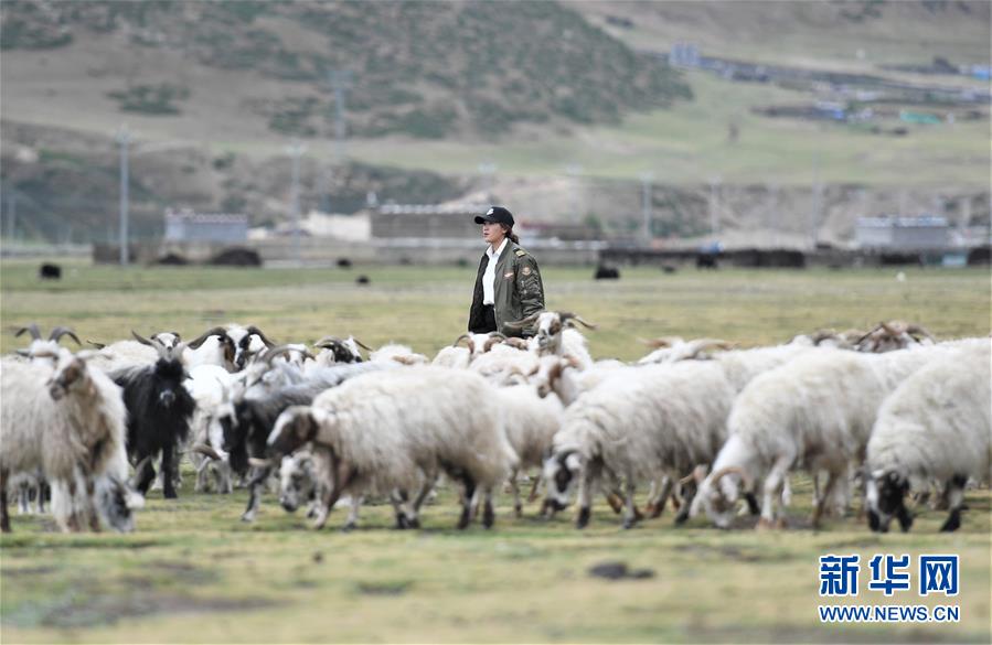 堅(jiān)熱益西在自家牧場放羊(7月13日攝)。新華社記者普布扎西攝