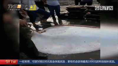 巨型“魔鬼魚”驚現(xiàn)碼頭,300斤!8名壯漢才能拖動!(視頻)