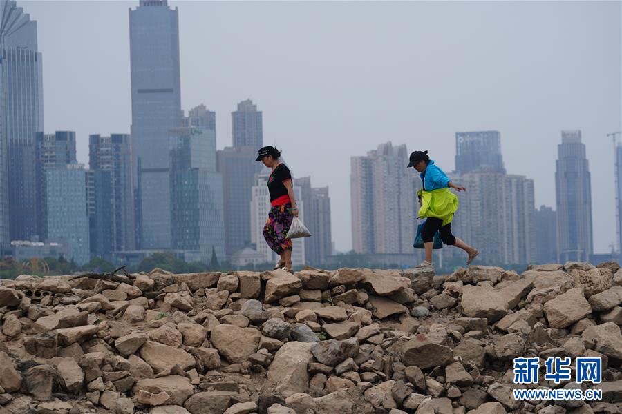 10月14日,兩名女士走在贛江南昌段露出的河堤上。當(dāng)日16時(shí),江西省氣候中心發(fā)布干旱橙色預(yù)警。由于連日少雨,贛江江西南昌段水位降至11.57米,大片沙洲露出水面。據(jù)江西省氣象部門統(tǒng)計(jì),7月下旬到10月初,江西省平均降雨量96毫米,比多年均值偏少約七成。據(jù)介紹,江西省水利部門正在進(jìn)行科學(xué)調(diào)度,積極做好引水防旱抗旱工作,其中南昌、九江、上饒、景德鎮(zhèn)4個(gè)設(shè)區(qū)市的13個(gè)縣(市、區(qū))共引水9717.6萬立方米,保障灌溉面積123萬余畝。 新華社記者 周密 攝