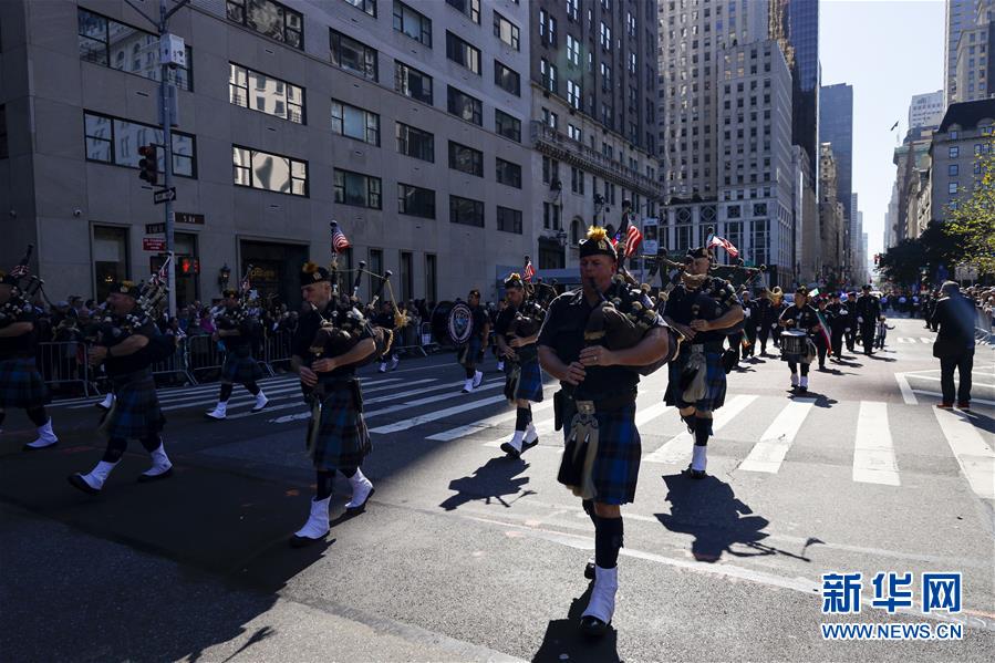 10月14日,在美國紐約曼哈頓第五大道,人們參加哥倫布日游行。當天,紐約舉行哥倫布日游行,紀念意大利航海家克里斯托弗·哥倫布首次到達美洲大陸。哥倫布日游行也是美國最大的展示意大利文化傳統(tǒng)的慶?;顒印P氯A社記者李木子攝