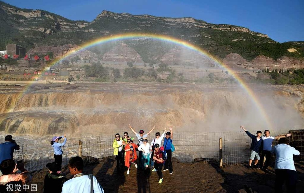 10月17日,游客在位于山西吉縣的壺口瀑布前拍照。