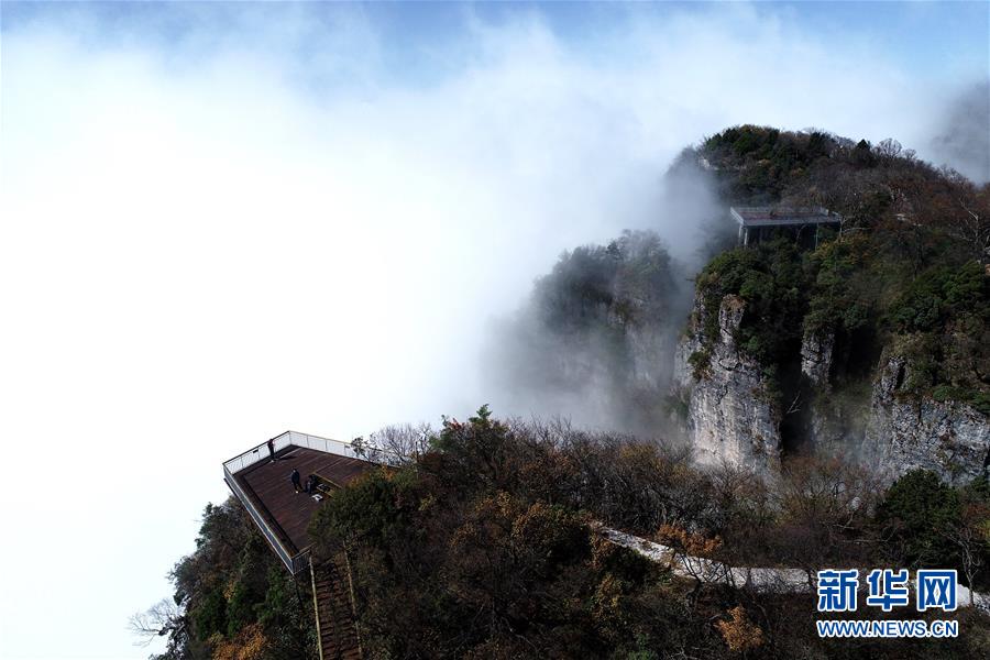 10月16日拍攝的漢中市南鄭區(qū)龍頭山風(fēng)景區(qū)(無人機(jī)拍攝)。 新華社記者 張博文 攝