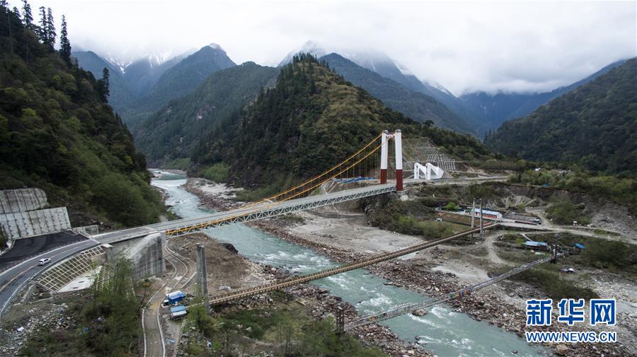 這是三個(gè)時(shí)期的林芝易貢大橋(2016年3月29日無人機(jī)拍攝)。 新華社記者 普布扎西 攝