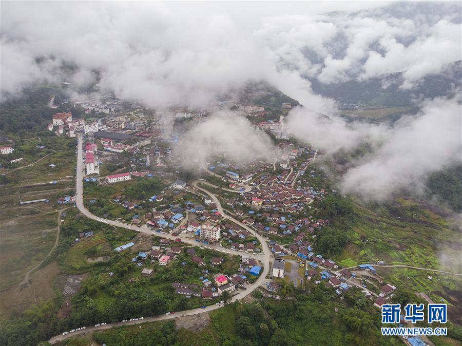 這是云?;\罩的西藏墨脫縣(4月9日無人機(jī)拍攝)。新華社記者李鑫攝