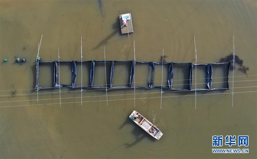 江西省南昌市新建區(qū)象山鎮(zhèn)河林村的農(nóng)戶正在大閘蟹養(yǎng)殖基地進(jìn)行捕撈(10月29日無(wú)人機(jī)拍攝)。 時(shí)下正值大閘蟹收獲的季節(jié),江西省南昌市新建區(qū)象山鎮(zhèn)河林村的村民忙著進(jìn)行大閘蟹的捕撈、包裝和外銷工作。近年來(lái),當(dāng)?shù)匾劳休爡^(qū)內(nèi)河道縱橫、水田眾多的資源優(yōu)勢(shì),支持鼓勵(lì)當(dāng)?shù)剞r(nóng)村引進(jìn)發(fā)展大閘蟹養(yǎng)殖業(yè),目前已有大閘蟹特色養(yǎng)殖基地300余畝,年產(chǎn)值超過(guò)200萬(wàn)元,為當(dāng)?shù)剞r(nóng)戶開(kāi)辟一條特色養(yǎng)殖的致富路。 新華社記者 彭昭之 攝