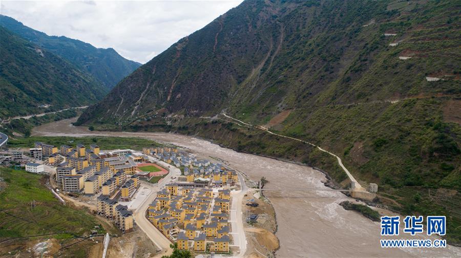 建于怒江邊的大興地鎮(zhèn)維拉壩“珠海小區(qū)”已初現(xiàn)規(guī)模(6月24日無人機(jī)拍攝)。新華社記者胡超攝