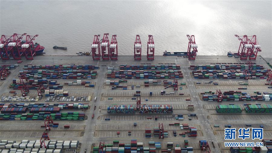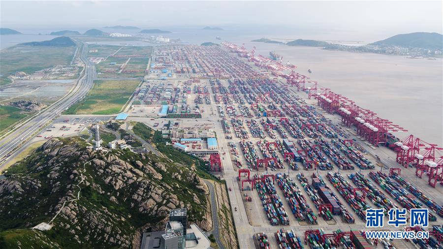 上海洋山深水港(10月16日無人機拍攝)。  新華社記者 丁汀 攝