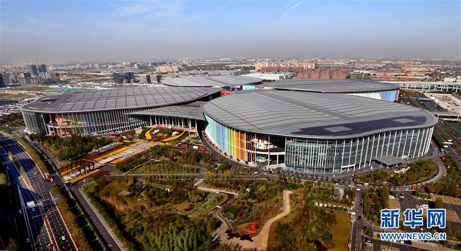 從空中俯瞰國家會展中心(上海)南廣場(11月1日無人機拍攝)。  新華社記者 凡軍 攝