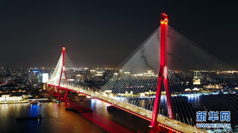 上海楊浦大橋(9月23日無人機拍攝)。  新華社記者 丁汀 攝